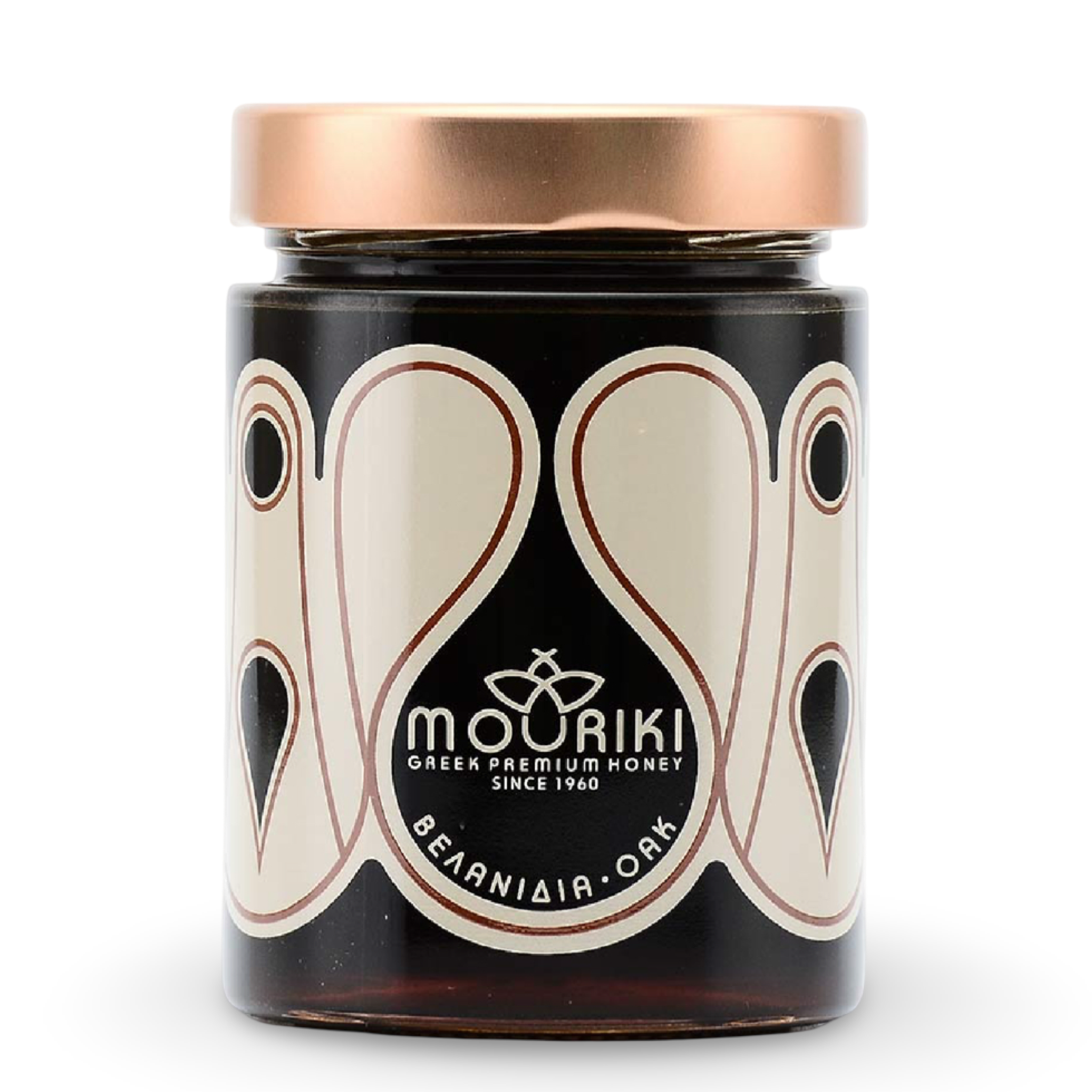 Greek Oak Honey 450g – a naturally dark honey with a rich, full-bodied taste and exceptional nutritional value. Harvested from ancient oak forests, it is renowned for its high antioxidant content and abundance of essential minerals such as potassium, magnesium, phosphorus, iron, and sodium.